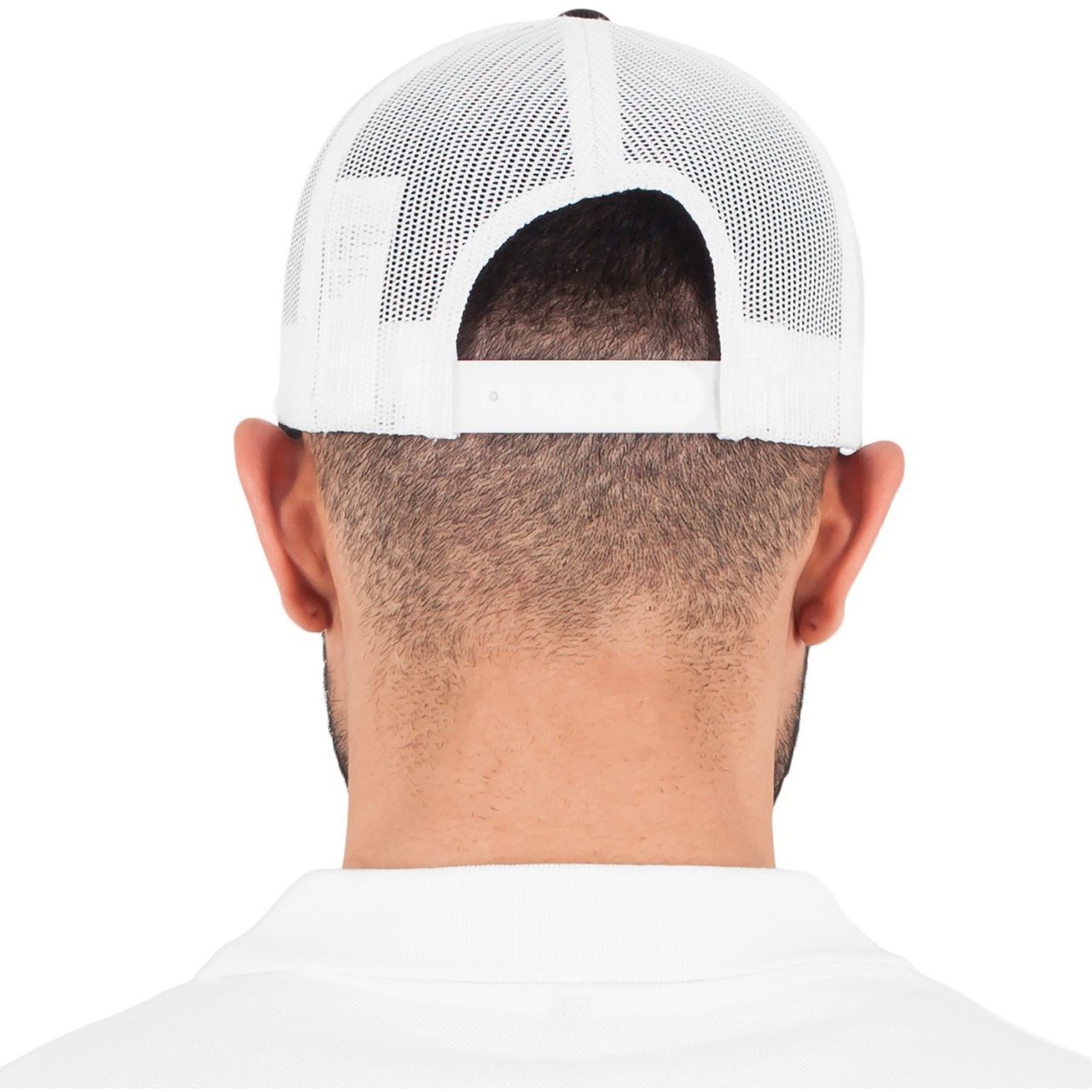 Two-color. Mesh back with plastic closure.