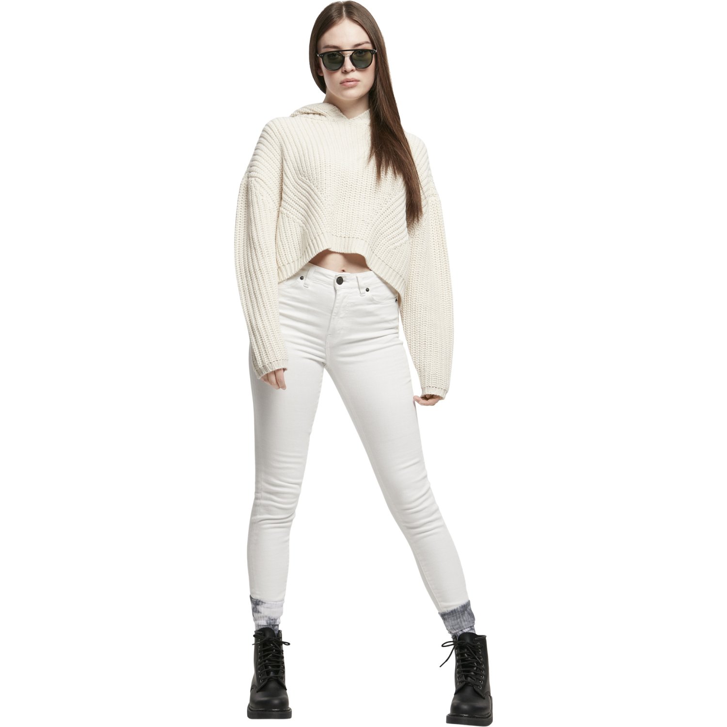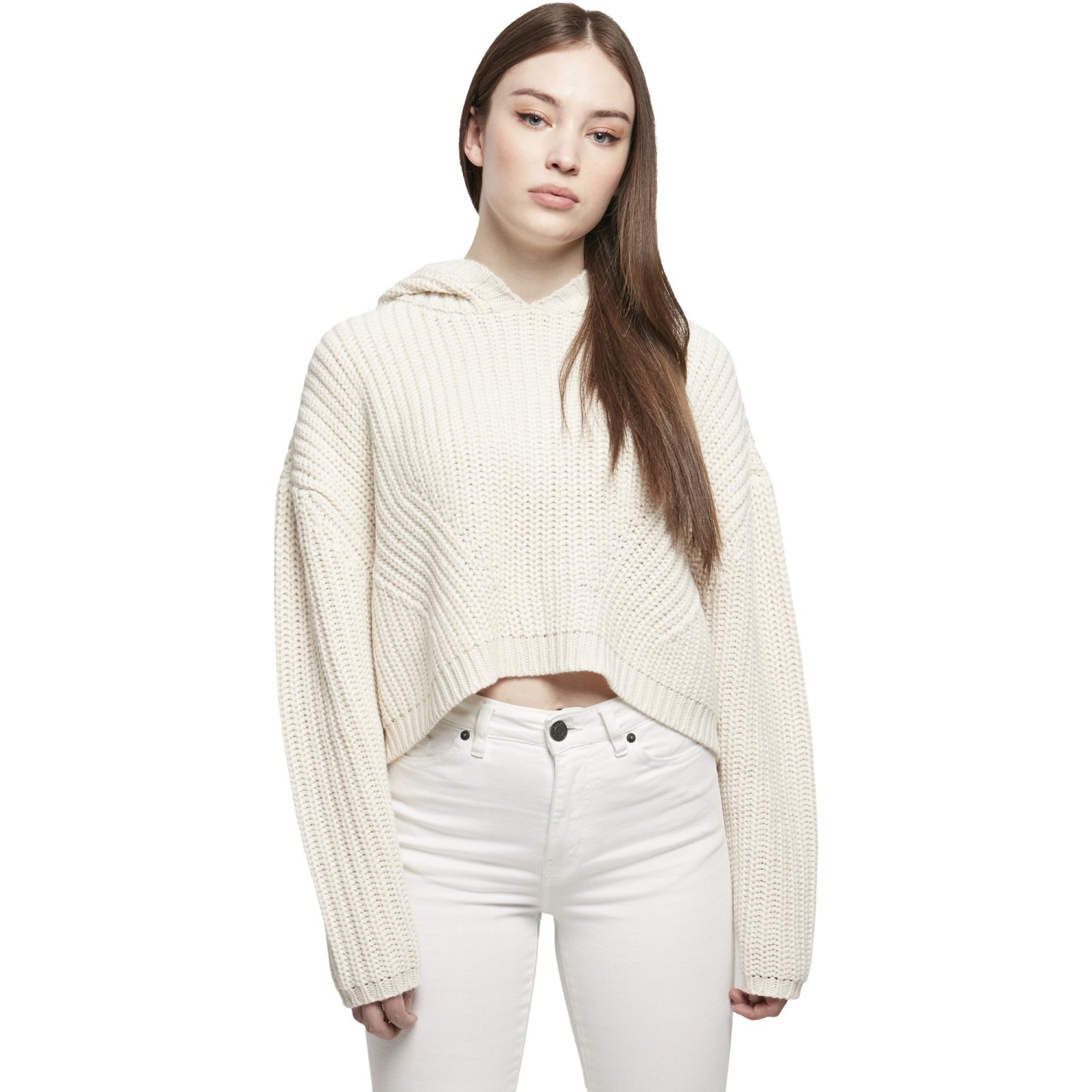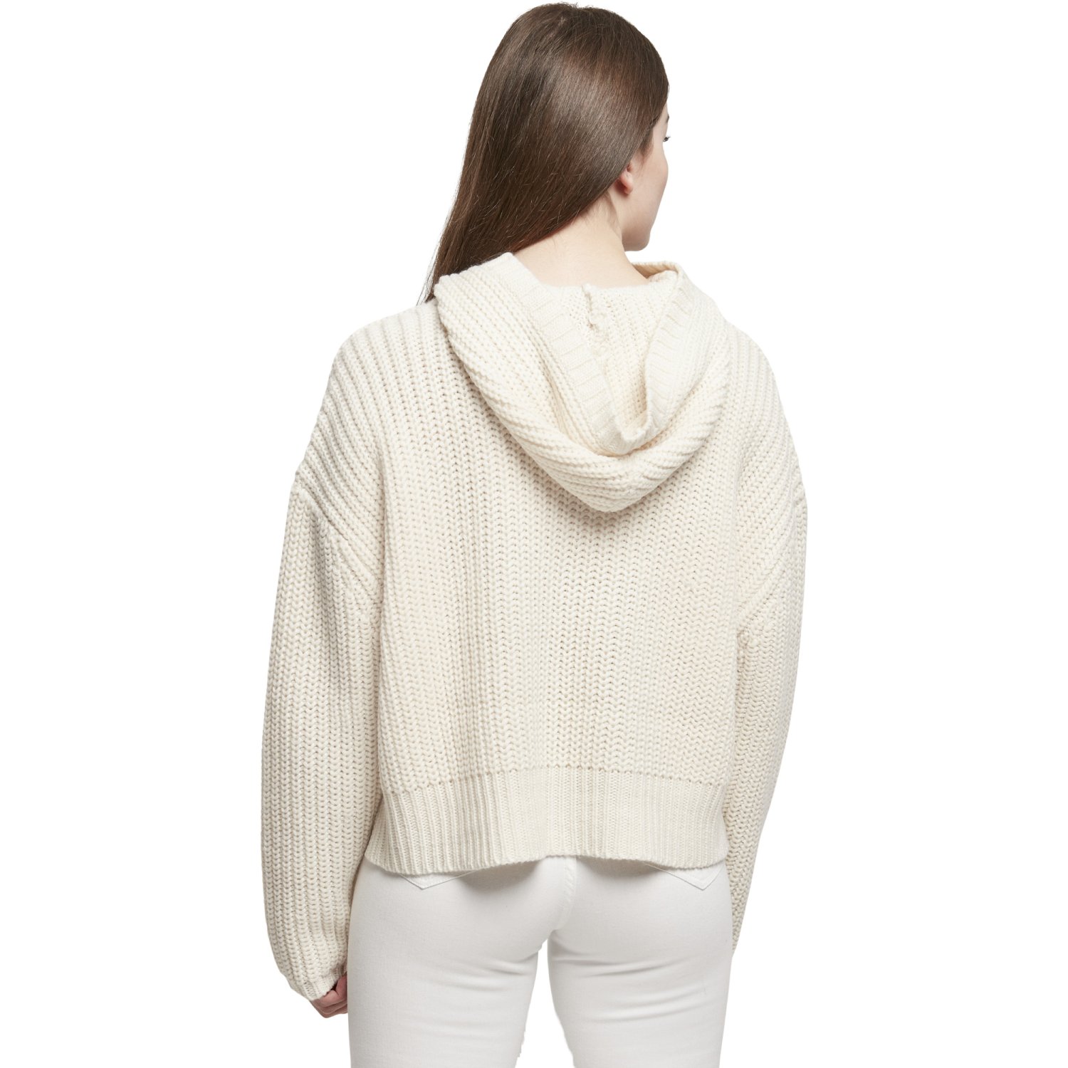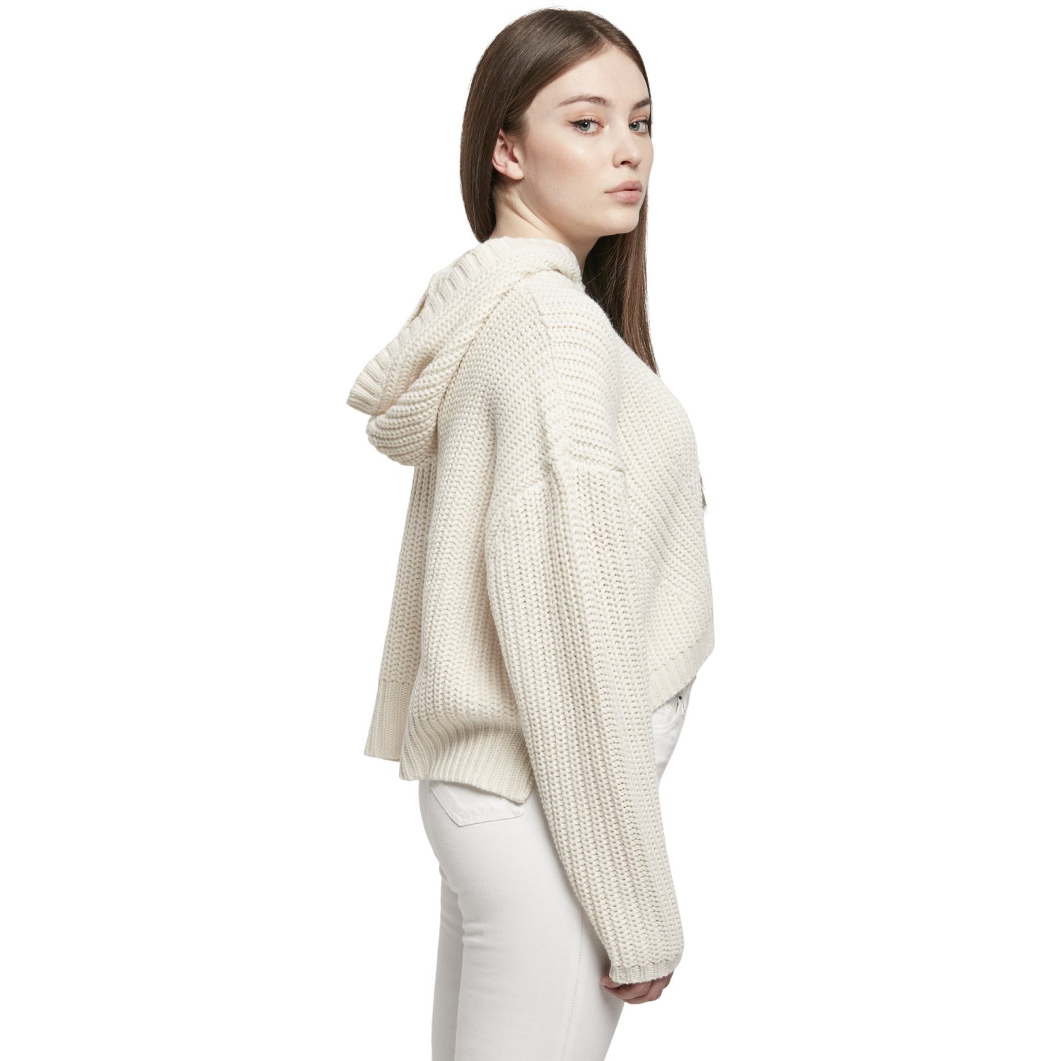 The women's top is a real fashion piece and offers a perfect mix of modern knitted sweater and cozy hoody.