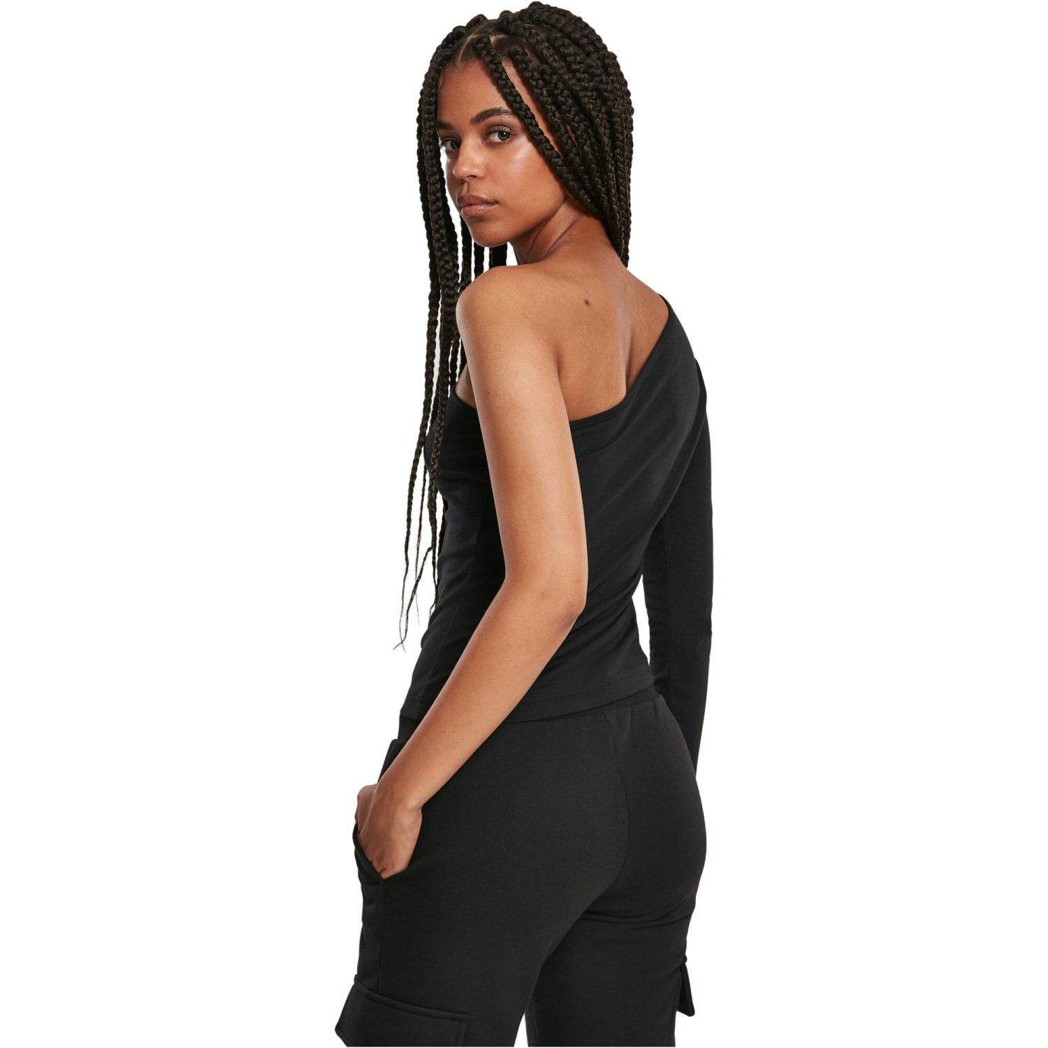 Ce t-shirt à manches longues tendance en jersey extensible confortable séduit par sa coupe asymétrique dynamique et ses détails sophistiqués. La coupe permet une épaule libre et crée un décolleté en pente excitant. Il y a aussi un ajustement confortable, près du corps.